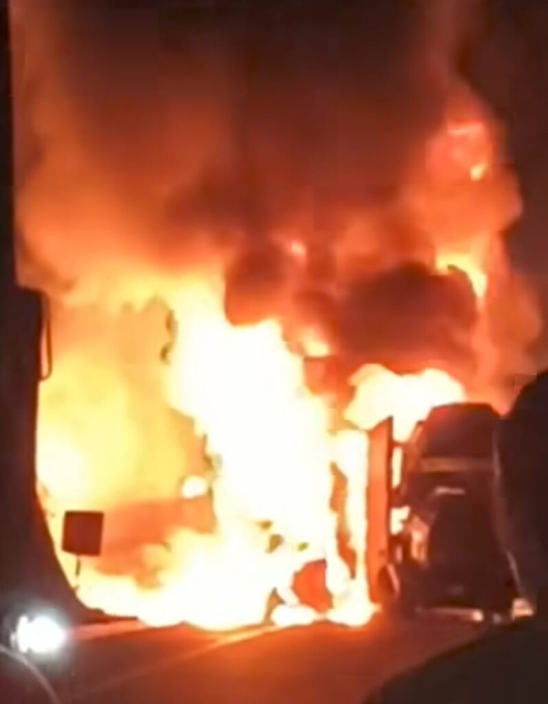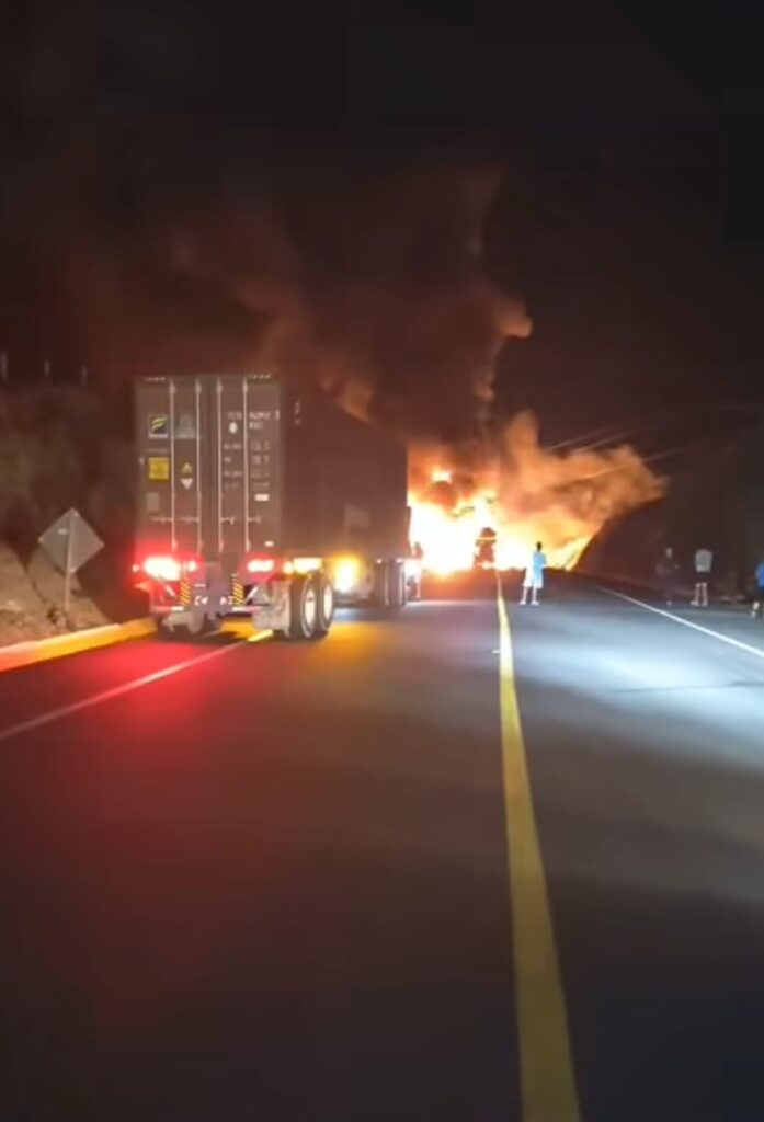 Las imágenes captadas por automovilistas y difundidas en redes sociales mostraban un infierno sobre el asfalto, estructuras calcinadas, llamas que alcanzaban varios metros de altura y una columna de humo visible a kilómetros de distancia.