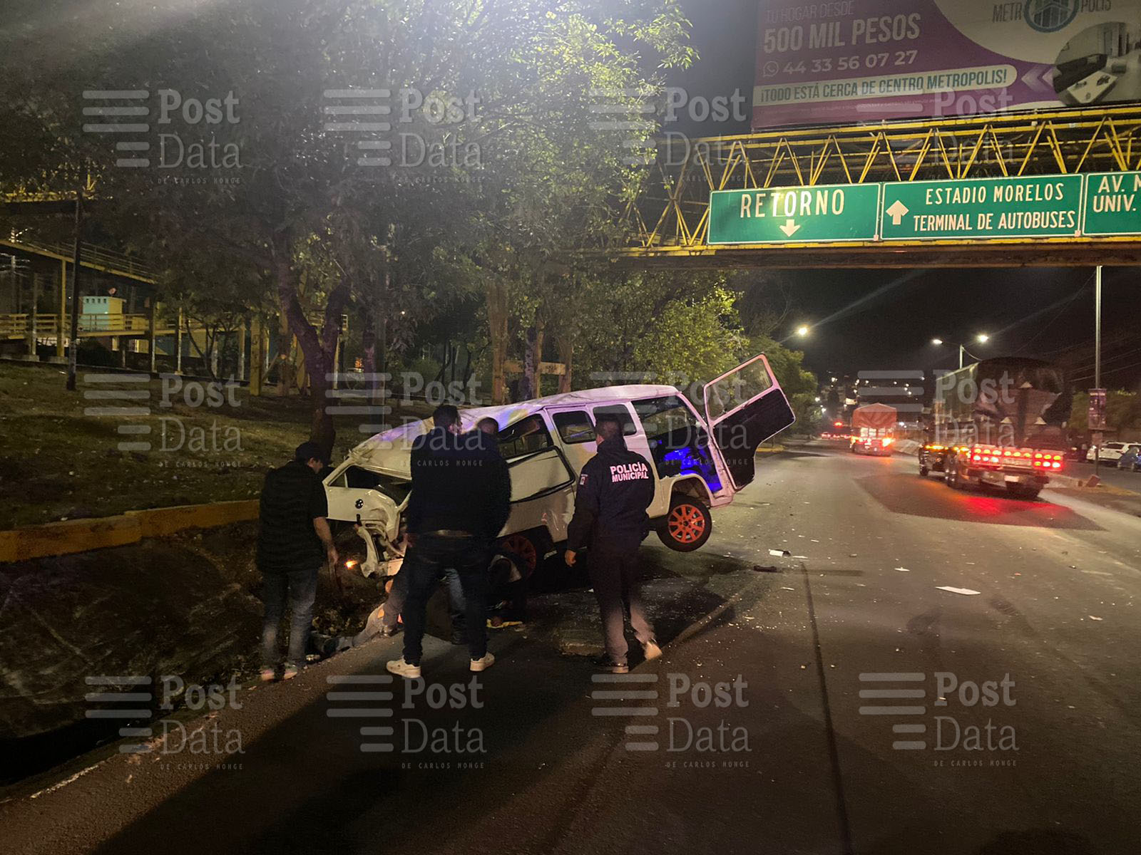 Morelia, Mich.- -Tres jóvenes lesionados, uno de ellos de gravedad, fue el saldo la volcadura de una combi sobre el libramiento Norte, a la altura de la colonia Cantera de la ciudad de Morelia, trascendió que la unidad fue golpeada por alcance por un vehículo que se dio a la fuga.