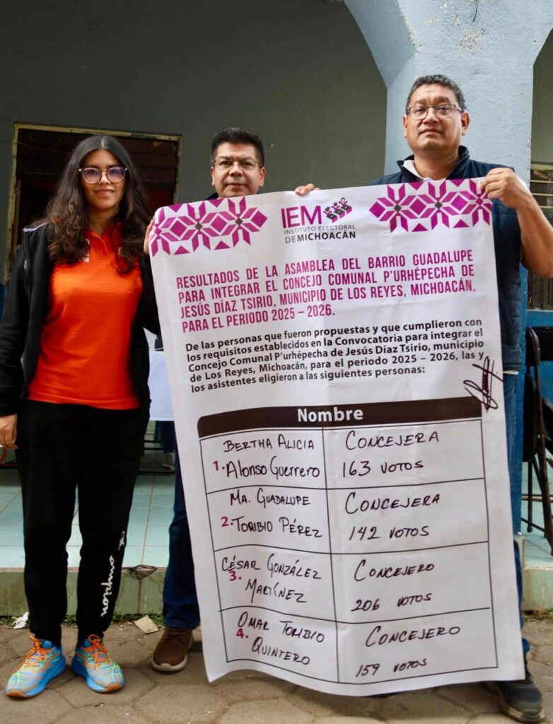 Los Reyes, Michoacán.- El Instituto Electoral de Michoacán (IEM) participó en el acompañamiento de la renovación del Concejo de Comunal Purépecha de Jesús Díaz Tsirio, perteneciente al municipio de Los Reyes, Michoacán, para el periodo 2025-2026.