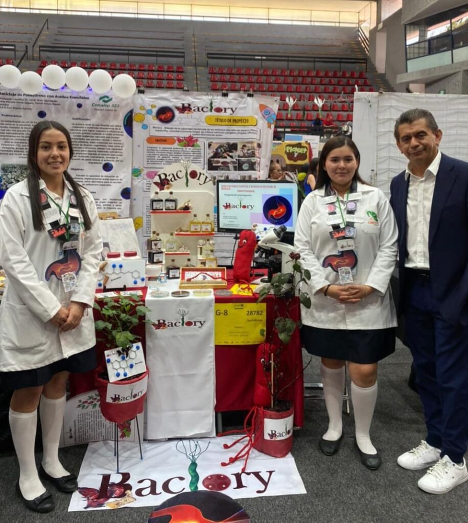 “La problemática por la que decidimos trabajar en este proyecto es contra el hongo Helicobacter pylori, causante de gastritis crónica y cáncer gástrico, mediante pruebas de capacidad bactericida in vitro realizadas en el laboratorio de microbiología, comparando con los halos de inhibición de los antibióticos químicos”, expuso Jassmine.