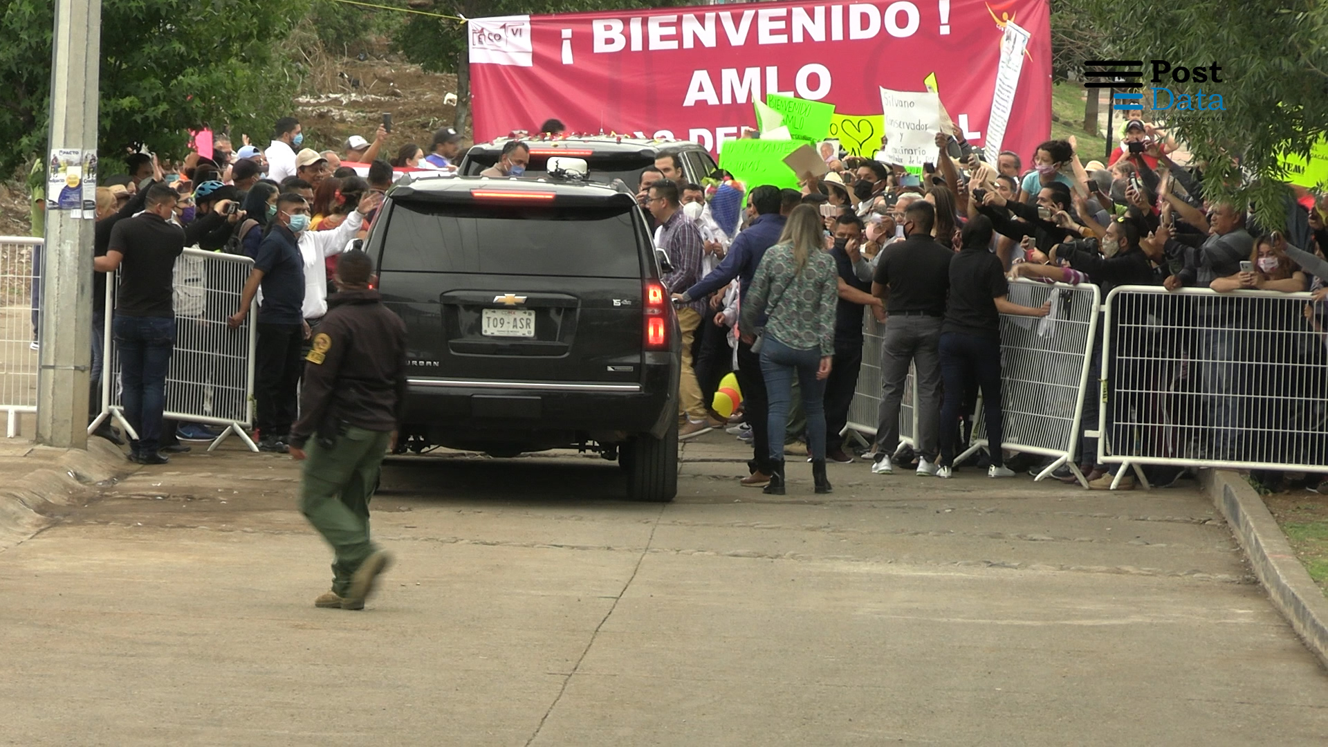 Entre todo este tumulto de manifestantes, simpatizantes y medios de comunicación, López Obrador salió en una camioneta negra tipo Suburban donde el amontonamiento y casi una persecución fue inevitable, entre quienes buscaban entregarle folders, grabar un video de su partida o gritar su inconformidad con alguno de los gobiernos.