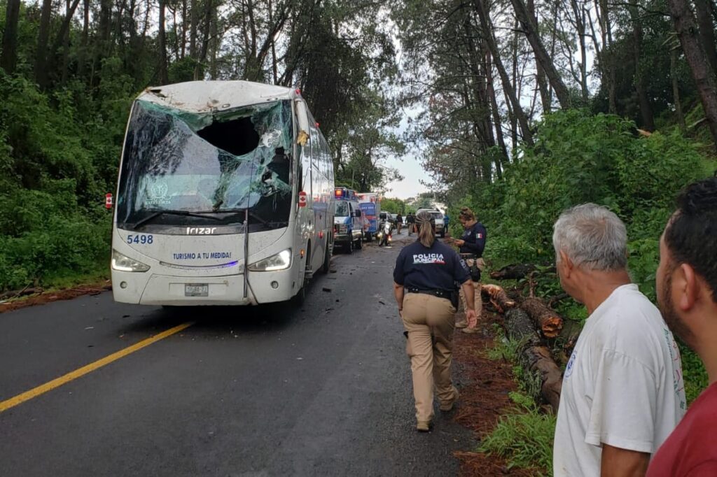Árbol cae sobre un autobús, en la libre Uruapan-Pátzcuaro; hay 2 heridos