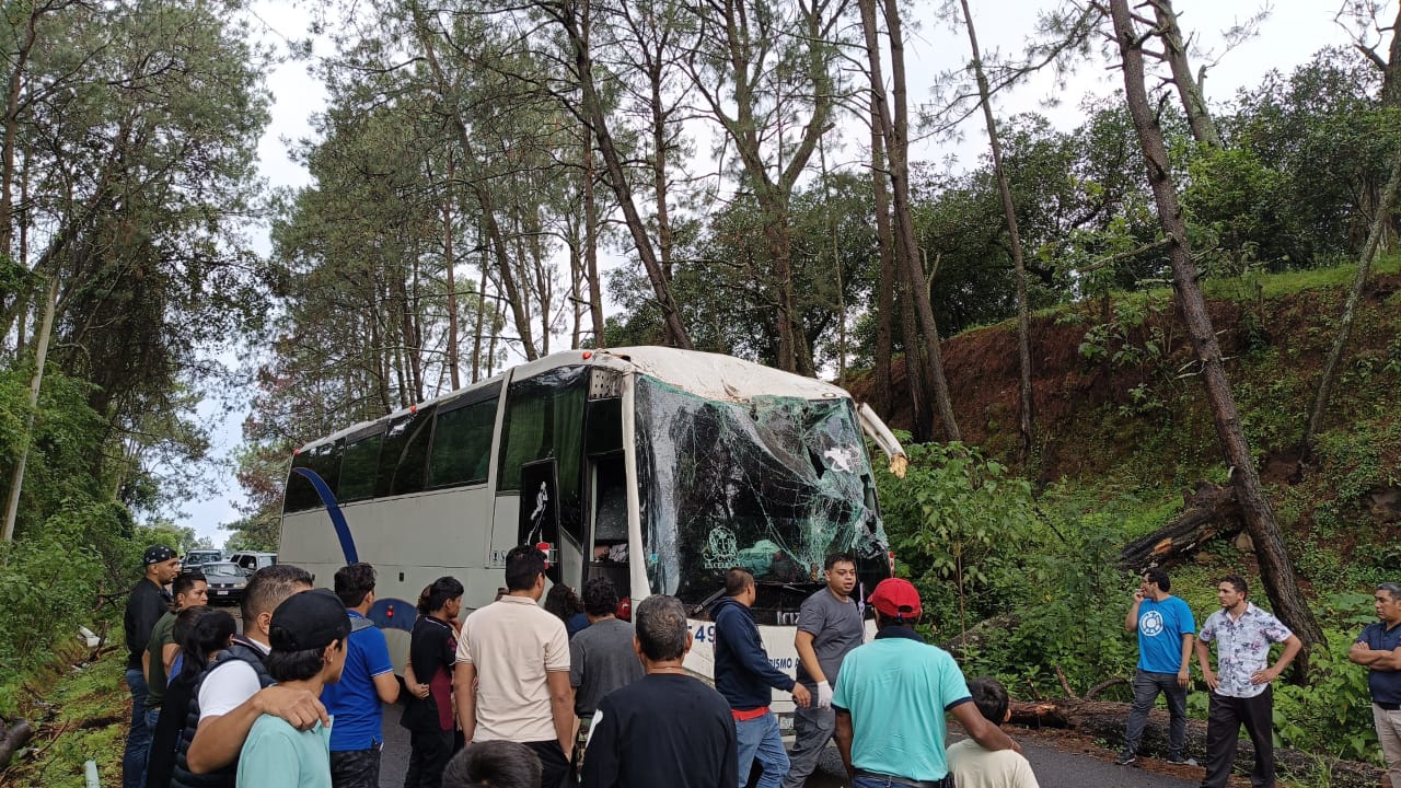 Árbol cae sobre un autobús, en la libre Uruapan-Pátzcuaro; hay 2 heridos