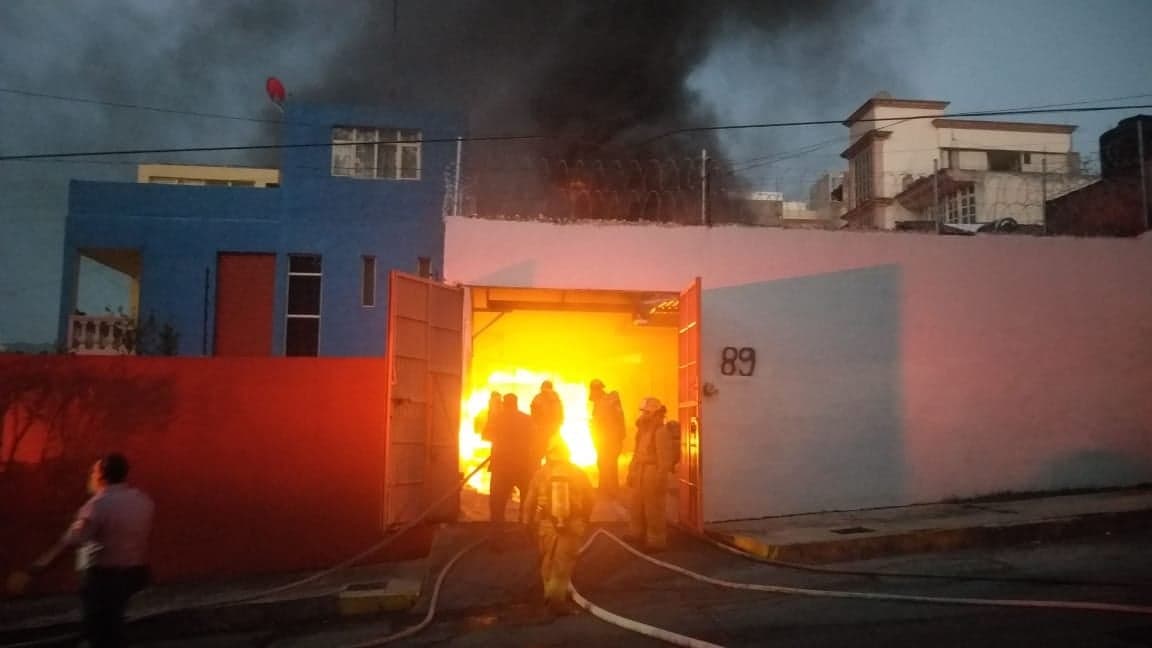 Morelia, Mich.- Bomberos de Protección Civil Estatal (PCE) y sus homólogos de Morelia combatieron un incendio de taller de alineación y bodega de PVC, el cual se registró la noche de este jueves en la colonia Bosques Camelinas, al sur de la capital michoacana.
