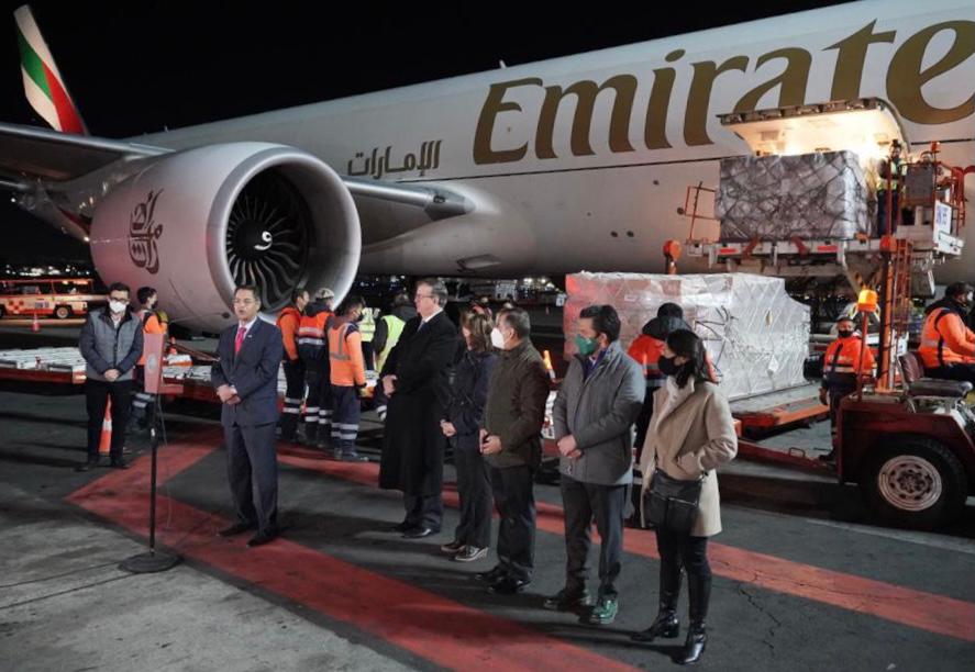 - Durante la ceremonia de recepción de las vacunas, el secretario de Relaciones Exteriores (SRE), Marcelo Ebrard Casaubón, destacó que México fue el primer país de América Latina en recibir vacunas contra COVID-19 y con este embarque se cuenta ya con dos fuentes de abastecimiento del biológico.