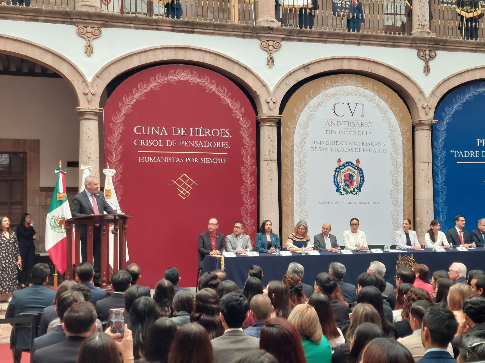 Durante su intervención en el acto por el 106 aniversario del Colegio Primitivo de San Nicolás, el mandatario estatal, expresó su respaldo y apoyo a la Máxima Casa de Estudios, por lo que dijo, van a trabajar para que sean considerada Universidad Nacional y también sostuvo que no los dejará solos, ya que se han generado más campus y anunció la próxima inauguración del hospital universitario.
