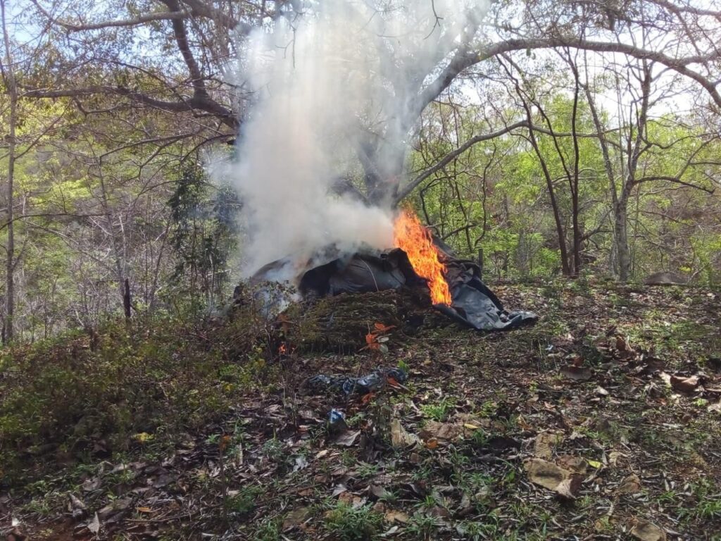 Durante el desarrollo de labores preventivas en la localidad de San Pedro Naranjestil de este municipio, los agentes de la Guardia Civil, el Ejército Mexicano y la FGR, encontraron el mencionado asentamiento en las inmediaciones de una zona serrana.