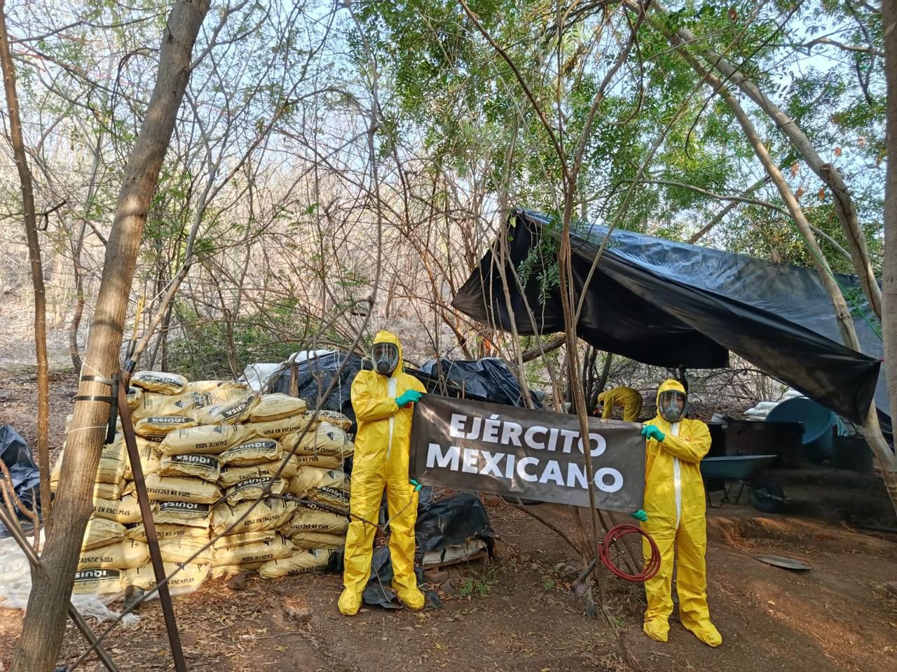 Durante el desarrollo de labores preventivas en la localidad de San Pedro Naranjestil de este municipio, los agentes de la Guardia Civil, el Ejército Mexicano y la FGR, encontraron el mencionado asentamiento en las inmediaciones de una zona serrana.