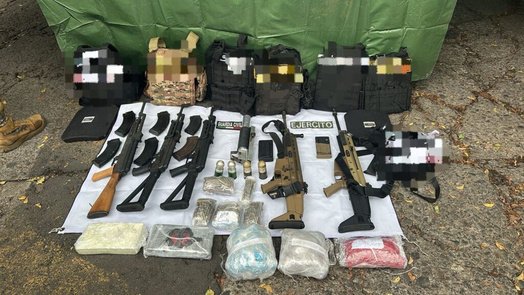 Asimismo, en el sitio se encontraron seis chalecos balísticos con leyendas alusivas a un grupo delincuencial y equipo táctico. La autoridad correspondiente continúa efectuando las diligencias establecidas en el lugar.