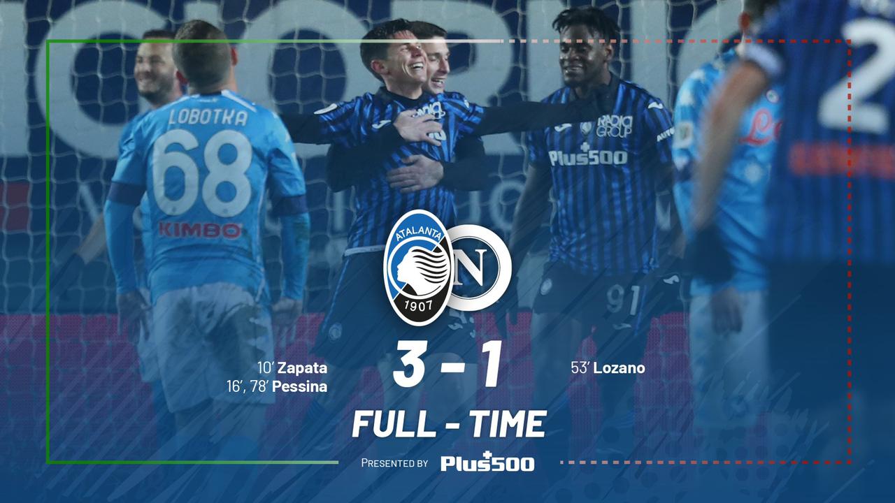 Los Nerazzurri, derrotaron en el juego de vuelta al Napoli 3-1, en un juego lleno de goles, en donde el cuadro local abrió rápidamente el marcador con gol de Duvan Zapata al minuto 10 del primer tiempo y al 16 Matteo Pessina anotó el segundo tanto del partido, con el que al medio tiempo se fueron ganando.