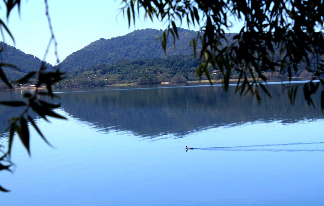 No hay, en estas vacaciones, los cientos de personas, decenas de vehículos con la música a todo volumen en las márgenes del lago, ya no lanzan botellas, botes y bachichas al agua; ese Espejo de los Dioses hace honor a su nombre, esta transparente y los peces salen felices y saltan sobre el agua; los patos prácticamente se habían extinguido y ahora se pasean con sus crías en filas. Algo ha cambiado definitivamente.