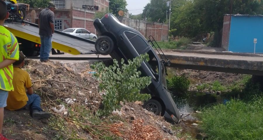 El incidente fue durante la tarde de este miércoles, cuando, por razones aún no esclarecidas, el conductor de un automóvil negro perdió el control de la unidad y terminó con el eje delantero sumergido en el canal, sobre una de las banquetas de concreto. A pesar de lo aparatoso del accidente, afortunadamente no hubo víctimas ni heridos.