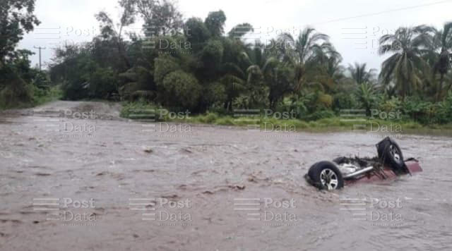 AQUILA, Mich.-28 de Agosto de 2020.- Una camioneta pick up fue arrastrado por la crecida de la corriente de un río en la localidad de Maruata, en el municipio de Aquila, debido a la tormenta tropical Hernán que pasa por el pacífico.