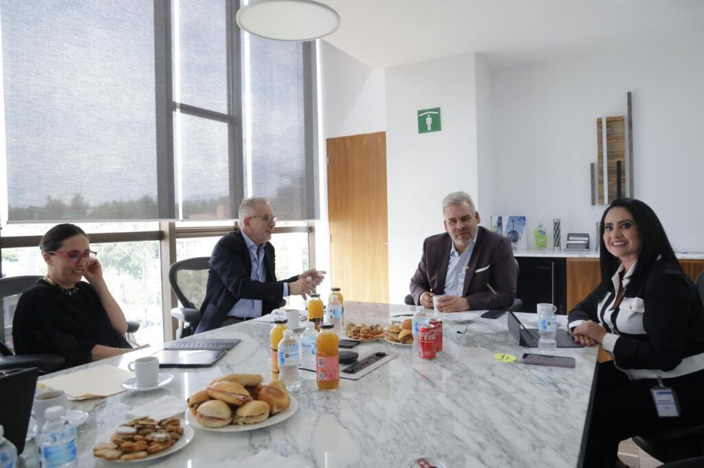 El gobernador Alfredo Ramírez Bedolla y directivos de las empresas que construyen el teleférico, Doppelmayr y Grupo Indi, revisaron pormenores de esta infraestructura que será un medio de transporte público seguro, inclusivo y amigable con el medio ambiente.