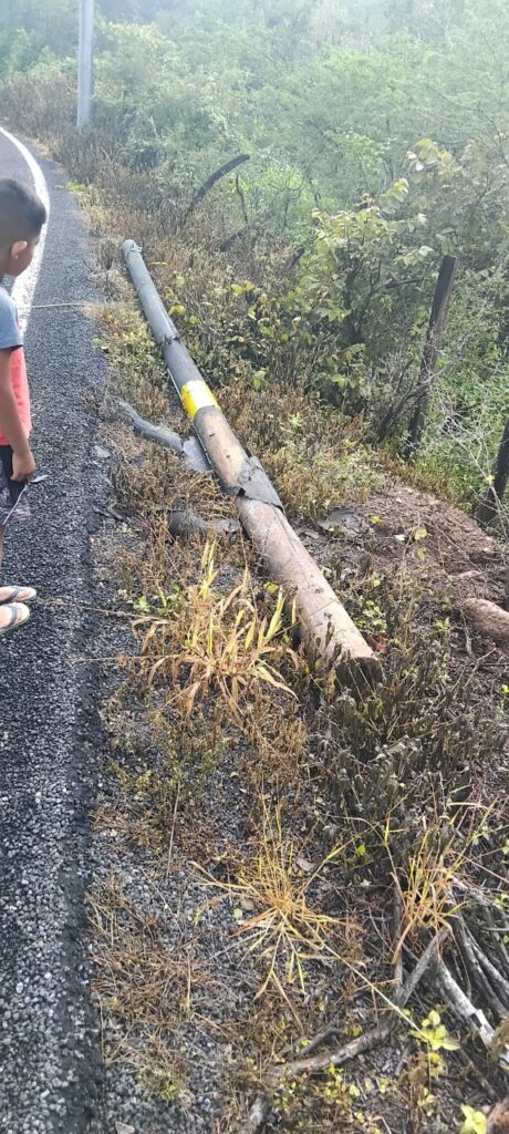 Según informes de testigos, tres postes de la fibra óptica cayeron en el kilómetro 15+100, obstaculizando la circulación de vehículos por la ruta. Los vecinos del área se unieron para mover los postes a la orilla de la carretera, pero el cable de la fibra óptica sigue expuesto.
