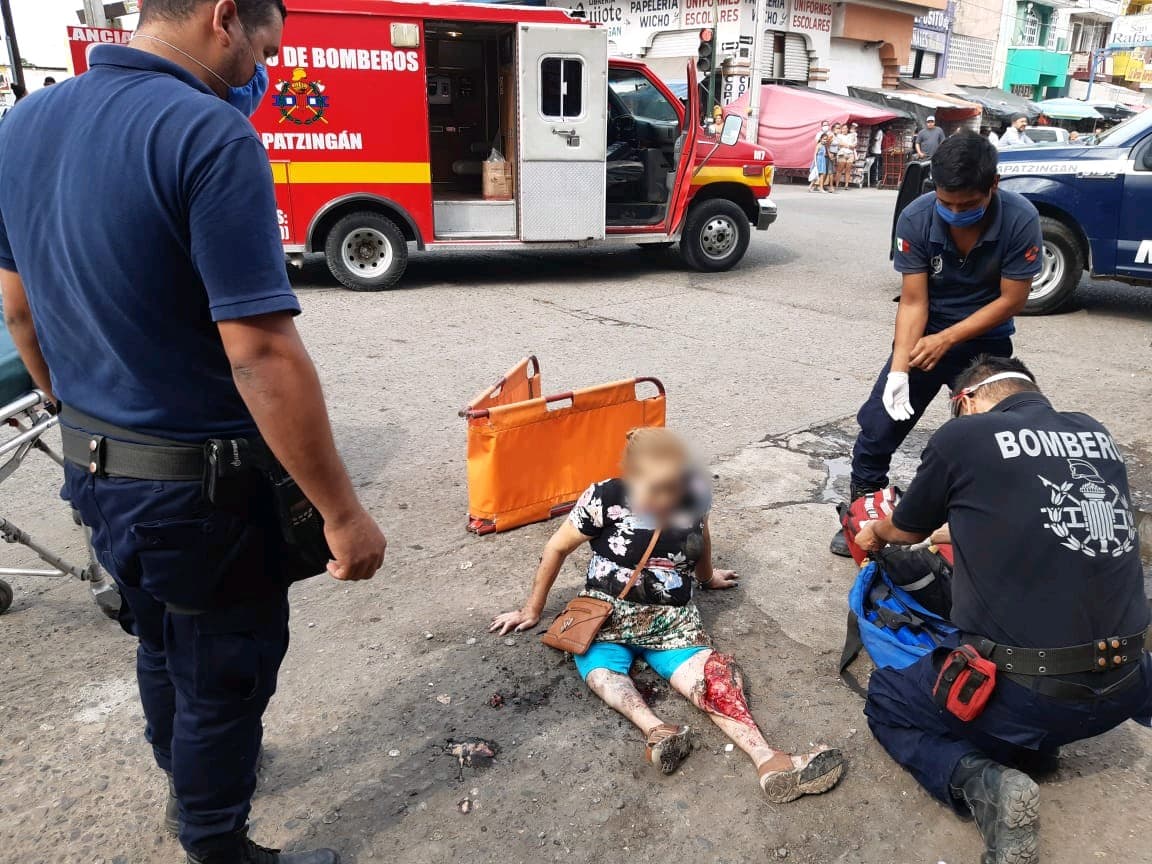 Apatzingán, Mich.-Un camión de pasajeros arrolló a una mujer y la dejó lesionada en la cinta asfáltica en la colonia Centro de Apatzingán, donde el conductor huyó en la unidad y personas que presenciaron el hecho llamaron al servicio de emergencias.