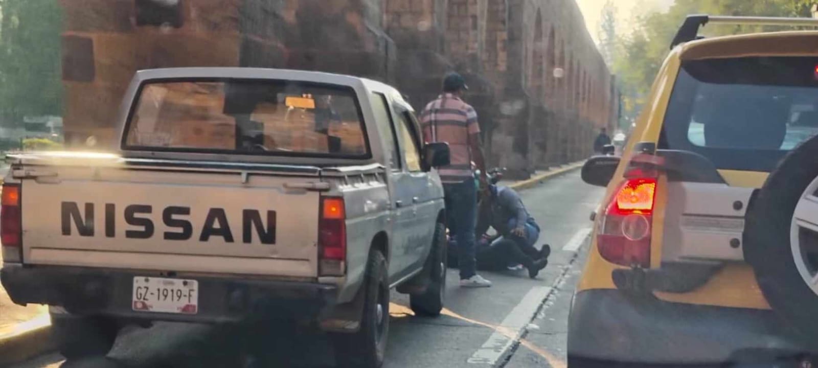 El accidente se registró durante la mañana de este martes a la altura del Bosque Cuauhtémoc y frente a la Plaza Morelos. Unos oficiales de la Policía Municipal vieron a la peatona tirada y se acercaron a auxiliarla.