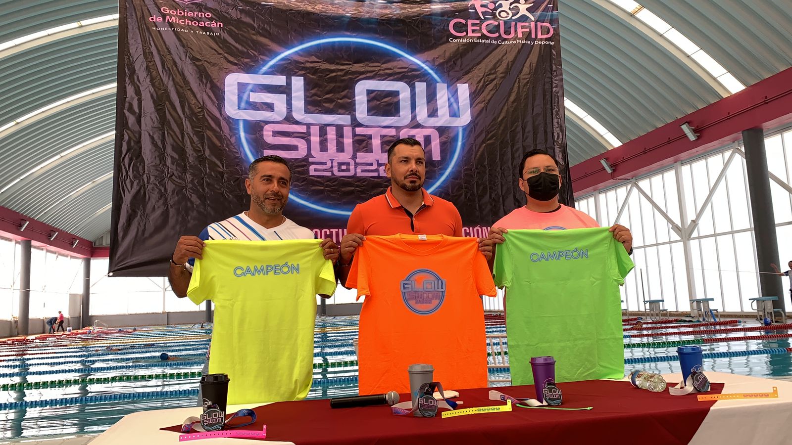 La Comisión Estatal de Cultura Física y Deporte presentó este miércoles el primer maratón nocturno de natación “Glow Swim”, que se realizará en el Complejo Acuático “Aquiles Serdán”.