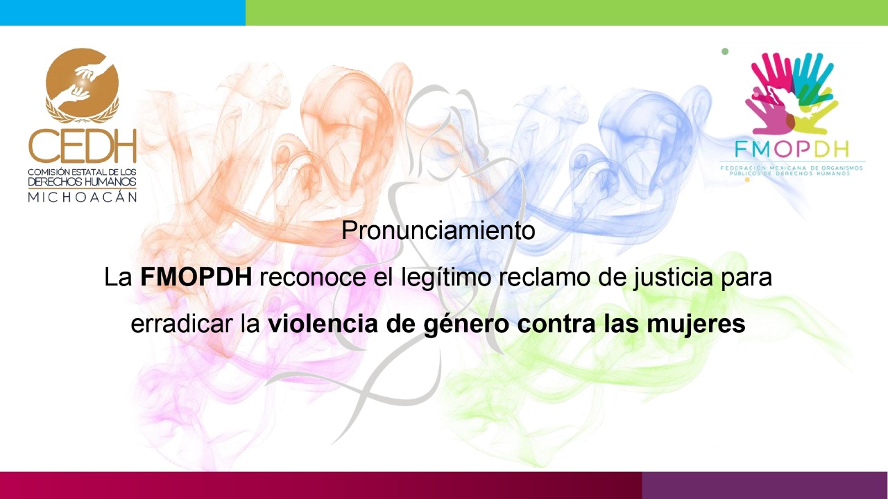 Esta Federación Mexicana de Organismos Públicos de Derechos Humanos (FMOPDH) reconoce su legítimo reclamo de justicia para erradicarla.