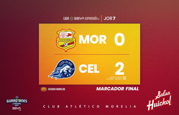 El equipo michoacano sufrió su tercera derrota en lo que va del torneo, en un partido en el que durante la primera mitad, se mantuvo la imparcialidad con un 0-0, con un Celaya que tuvo las oportunidades más claras de abrir el marcador.