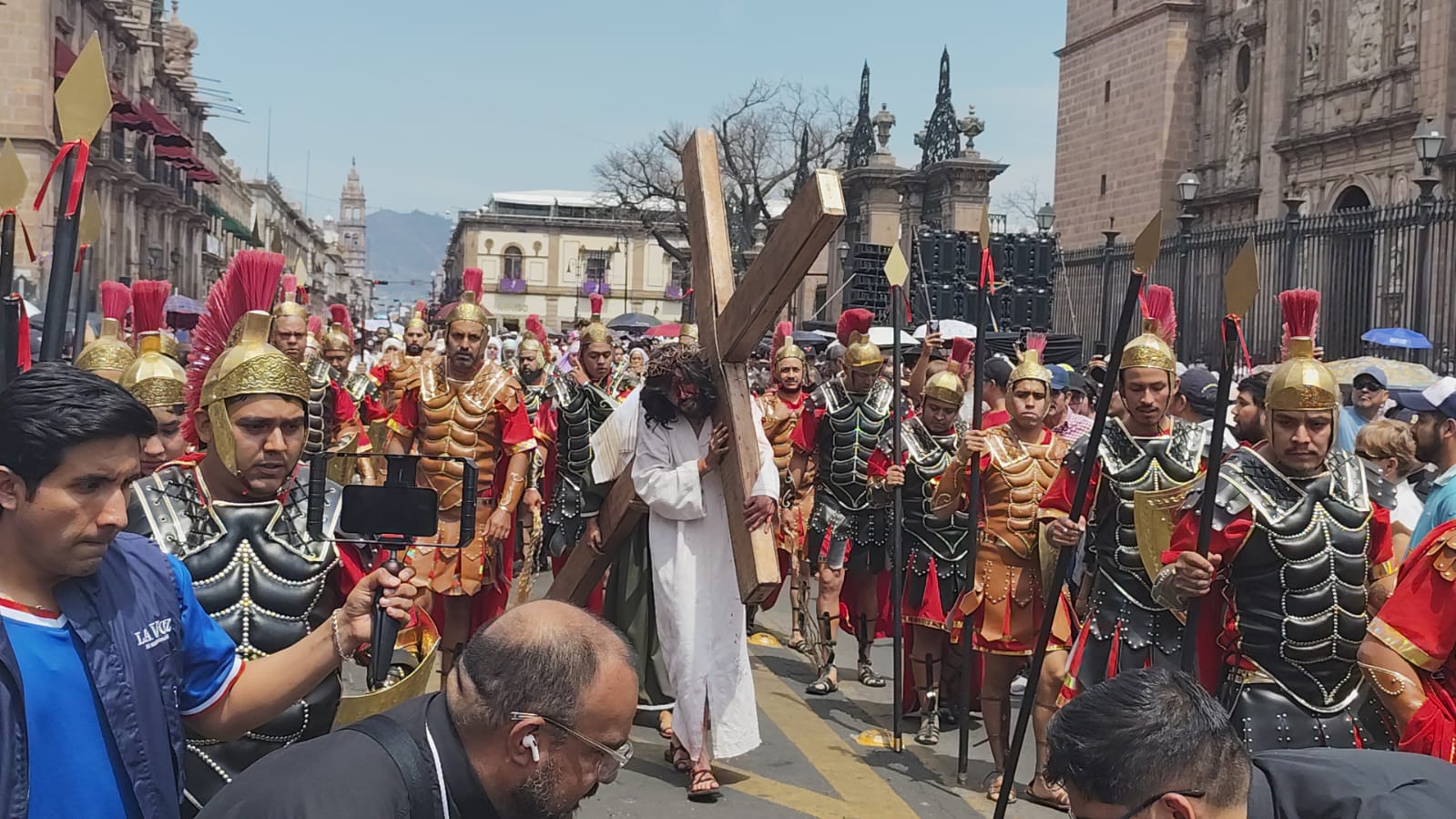 Calles del centro histórico de Morelia fueron escenario por primera vez este Viernes Santo, de la representación del Viacrucis, que escenifica la pasión y muerte de Jesucristo, uno de los pasajes más importantes para la Iglesia Católica.