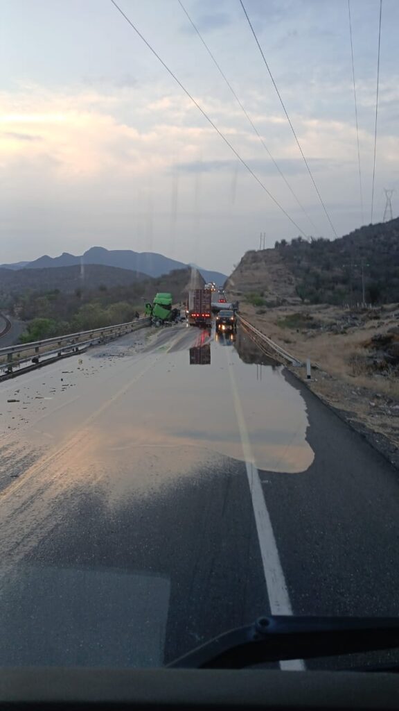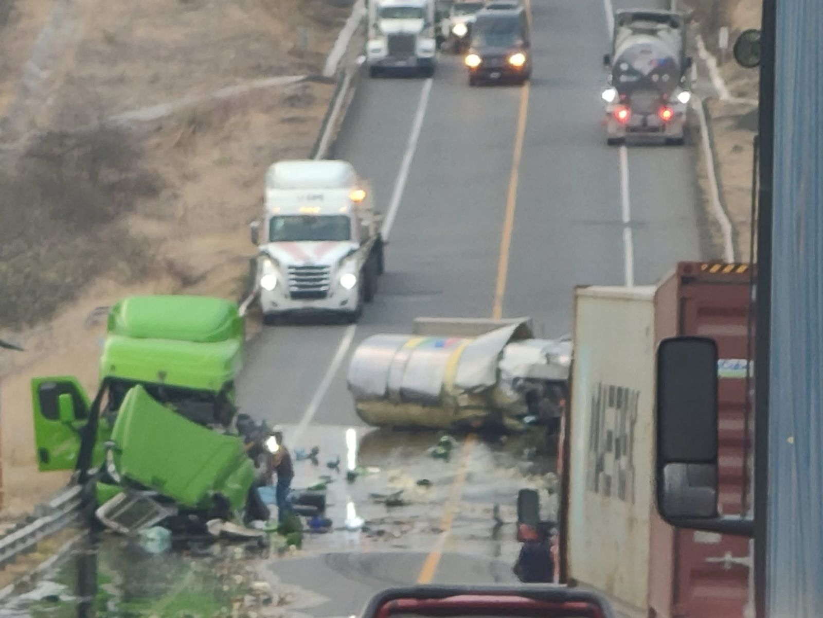 Arteaga, Mich.- Un aparatoso choque entre un camión tipo góndola y el remolque de una pipa cargado con aceite vegetal, dejó a un trailero herido y prensado, mientras que el derrame del líquido obligó al cierre de la Autopista Siglo XXI.
