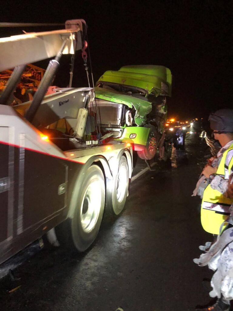 Oficiales de la Guardia Nacional fueron los encargados de realizar los peritajes correspondientes. Posteriormente, arribaron bomberos quienes junto con personal de la autopista comenzaron la limpieza de la carretera, ante lo que las autoridades anticiparon que probablemente la circulación se reestablecería durante las primeras horas de este sábado.