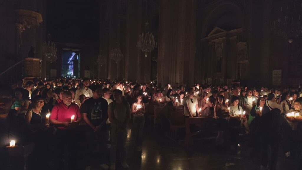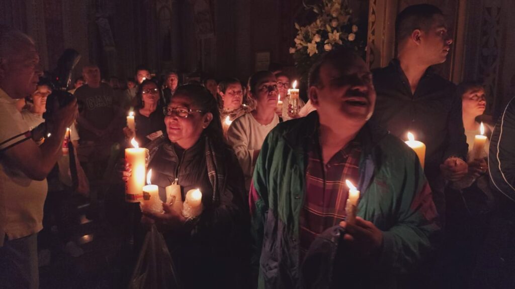 Fieles encendieron de nueva cuenta sus velas para reafirmar su profesión de fe y fueron bendecidos como católicos renovados.