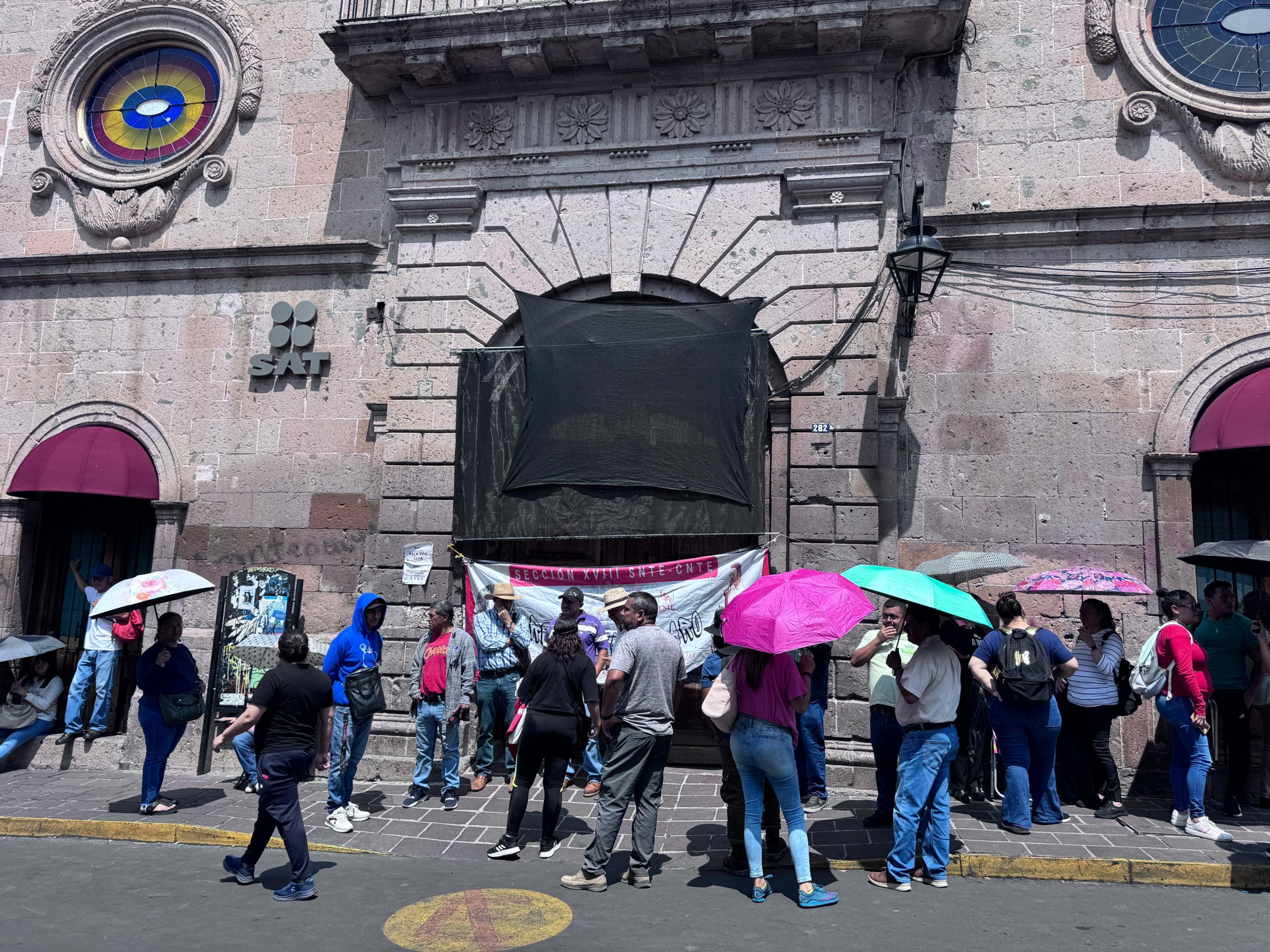 Ante la amenaza de toma por parte de trabajadores de la educación, las oficinas del Sistema de Administración Tributaria (SAT), ubicadas en la calle Abasolo de Morelia, cerraron sus puertas desde las 8 de la mañana, evitando así el bloqueo.