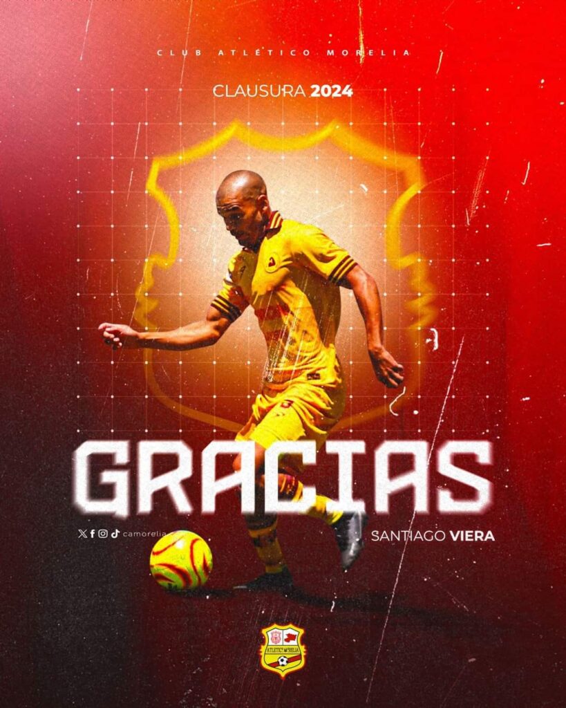 El último elemento que hasta el momento la directiva michoacana anunció que causará baja de cara al próximo torneo, es el uruguayo Santiago Viera, quien llegó en la jornada 10 para apuntalar el mediocampo y solo pudo participar en 6 encuentros 5 de ellos como titular totalizando 466 minutos.
