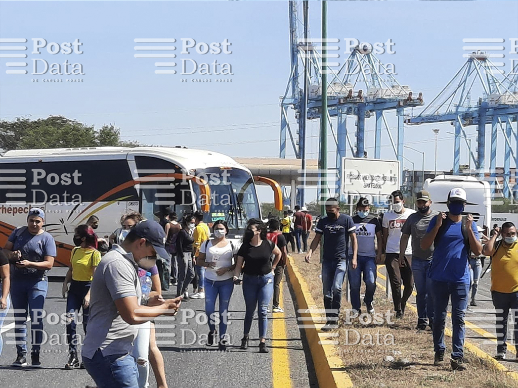 Integrantes de la Coordinadora Nacional de Trabajadores de la Educación (CNTE) realizaron su primera manifestación del año en el municipio de Lázaro Cárdenas, donde bloquearon una de las puertas de acceso al recinto portuario, para evitar la salida de contenedores para transportarse de manera terrestre.