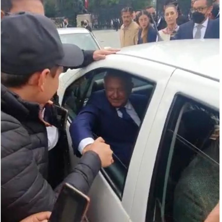 A través de una serie de videos, se muestra a los docentes acercándose al vehículo del mandatario nacional, quien con la ventana abajo escuchó las inconfomidades y sin hablar del tema solo les dio un apretón de manos.
