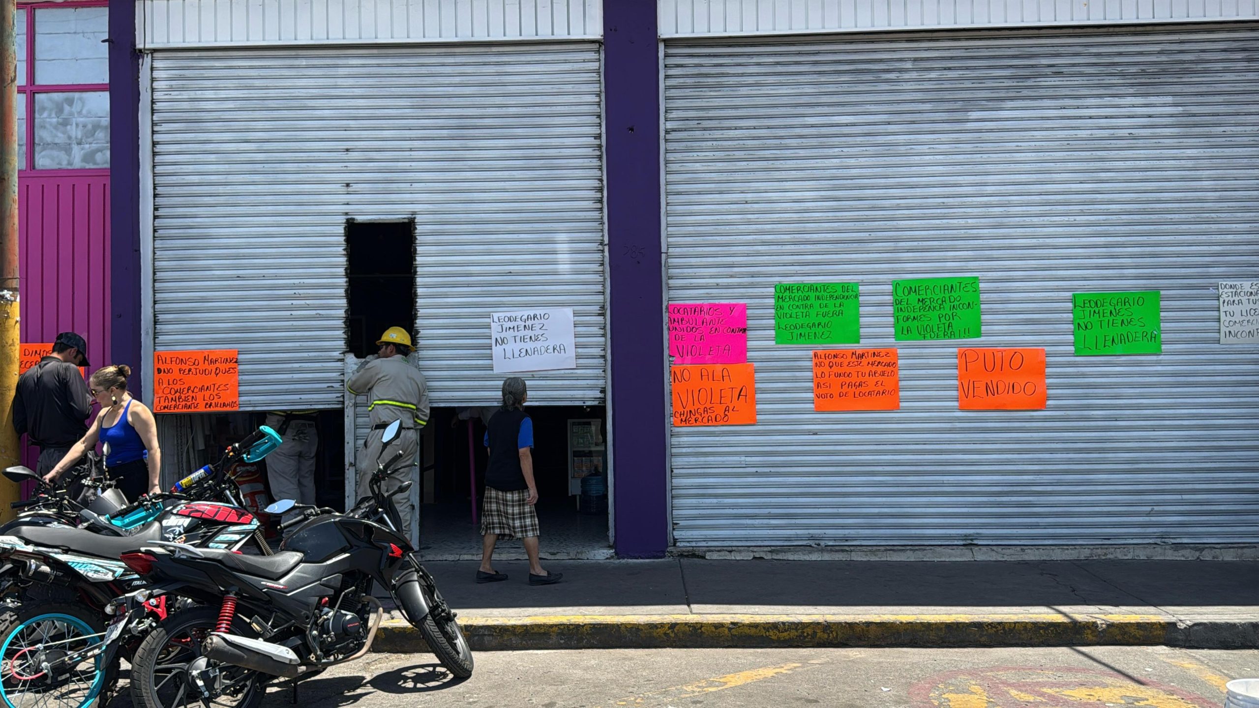 Comerciantes bloquean calles por llegada de La Violeta al Mercado Independencia