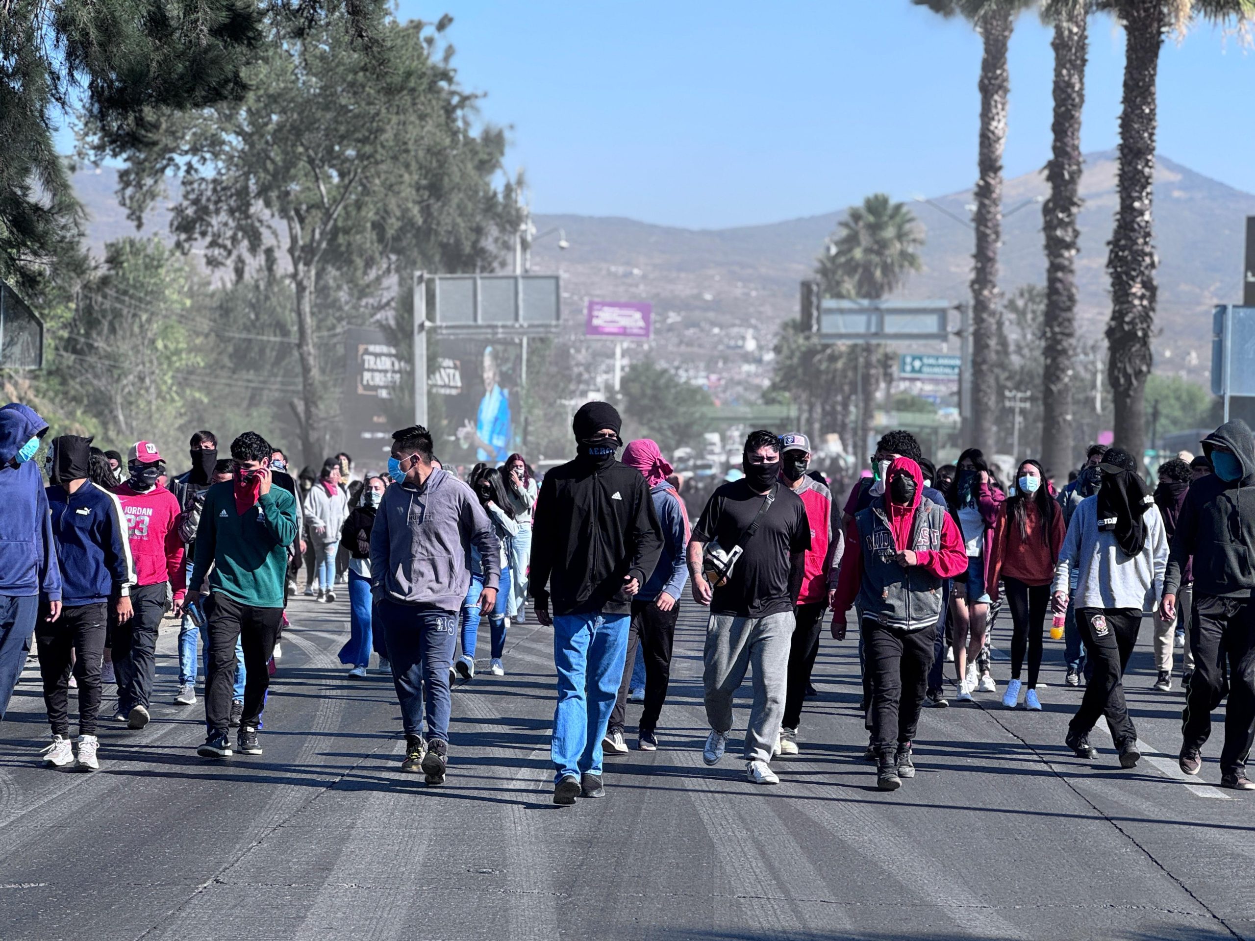 Afirmaron que mantendrán el bloqueo frente a las instalaciones de la Fiscalía General del Estado (FGE) hasta que las autoridades liberen a los detenidos y atiendan sus demandas como estudiantes.
