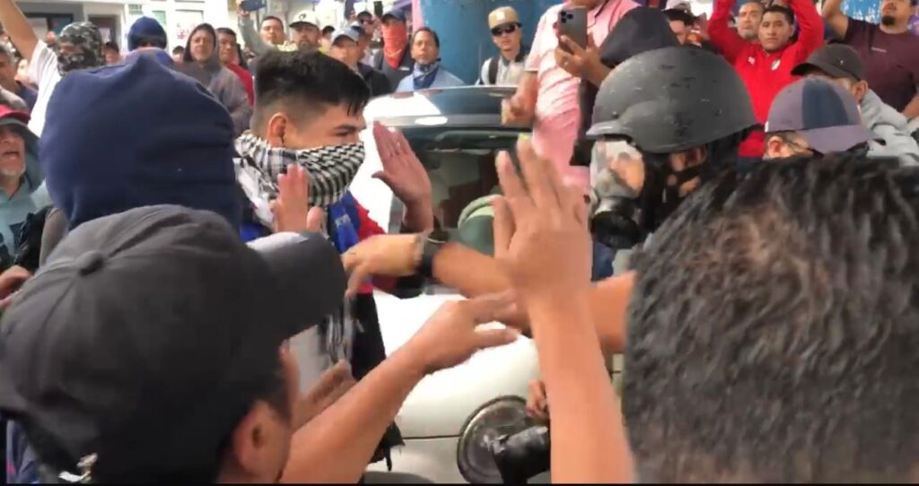En un momento álgido, de las filas policiacas arrojaron un líquido en el rostro del fotoperiodista de Contraluz, Iván Villanueva, lo que derivó en una serie de empujones, por lo que la Guardia Civil tuvo que intervenir para evitar una confrontación mayor.