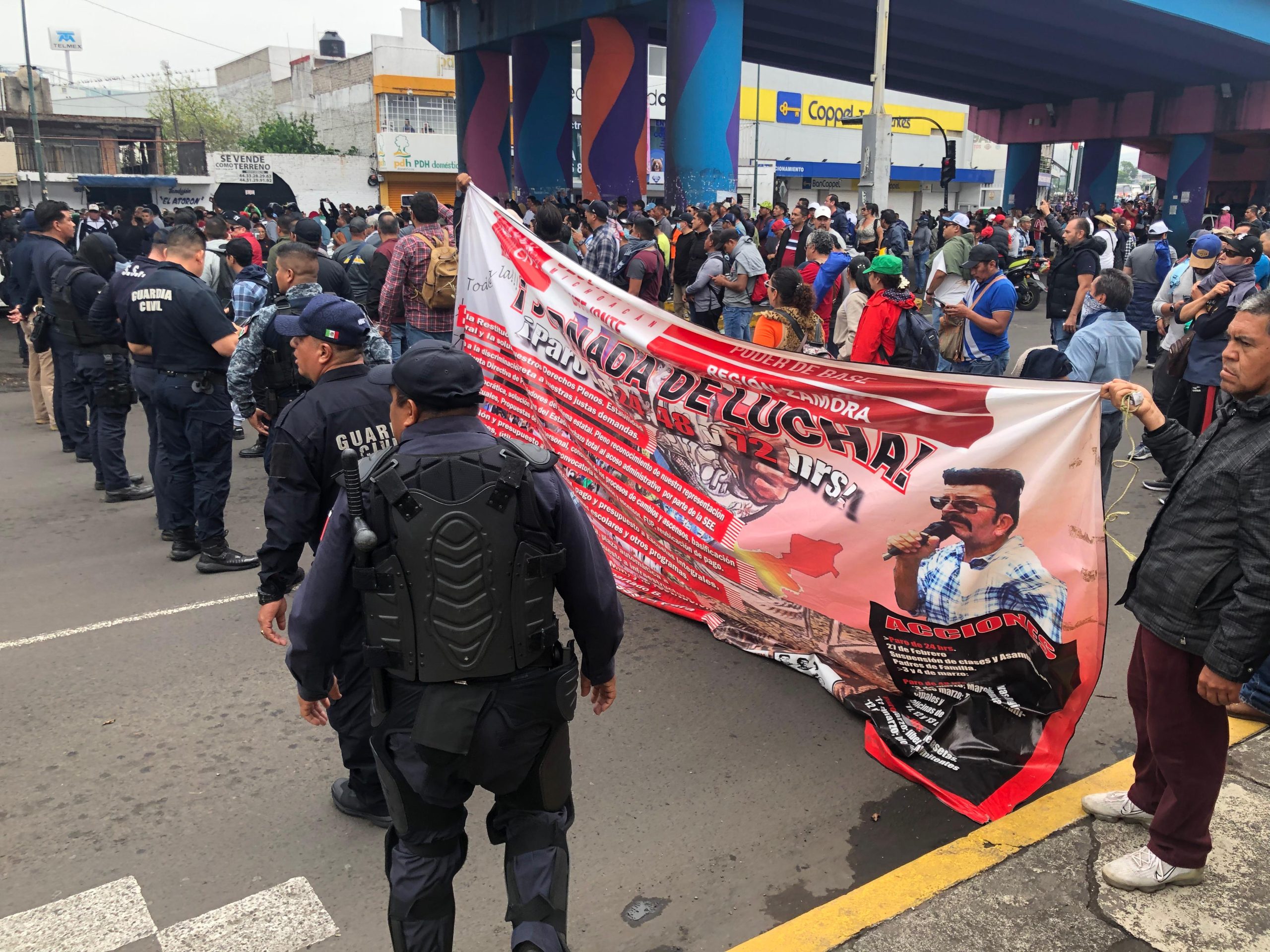Víctor Oziel Téllez, secretario técnico de organización del Poder de Base, calificó como una represión la presencia de granaderos que obstruían una manifestación pacífica.