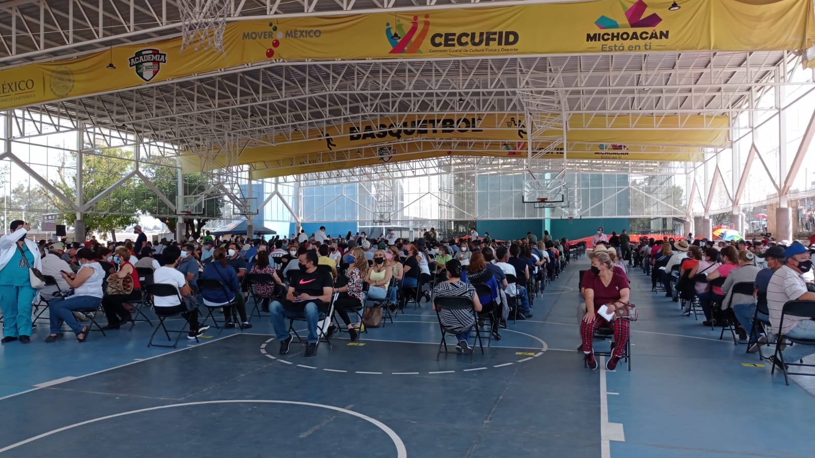 En su segundo día, la Jornada de Vacunación contra el Covid-19 para personas entre 50 y 59 años, además de las mujeres embarazadas, se desarrolló con largas filas en la Unidad Deportiva Ejército de la Revolución de Morelia, algo no visto desde que inició la inmunización.