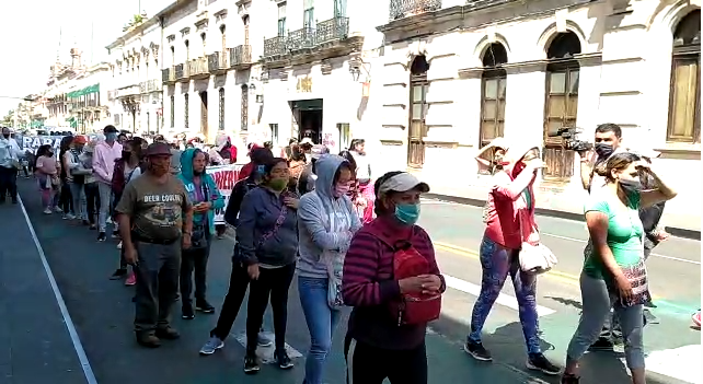 Integrantes de la Organización Estatal Independiente de Padres de Familia se manifestaron al medio día de este jueves en el centro histórico de Morelia, frente al Palacio de Gobierno y minutos después en el Congreso del estado.