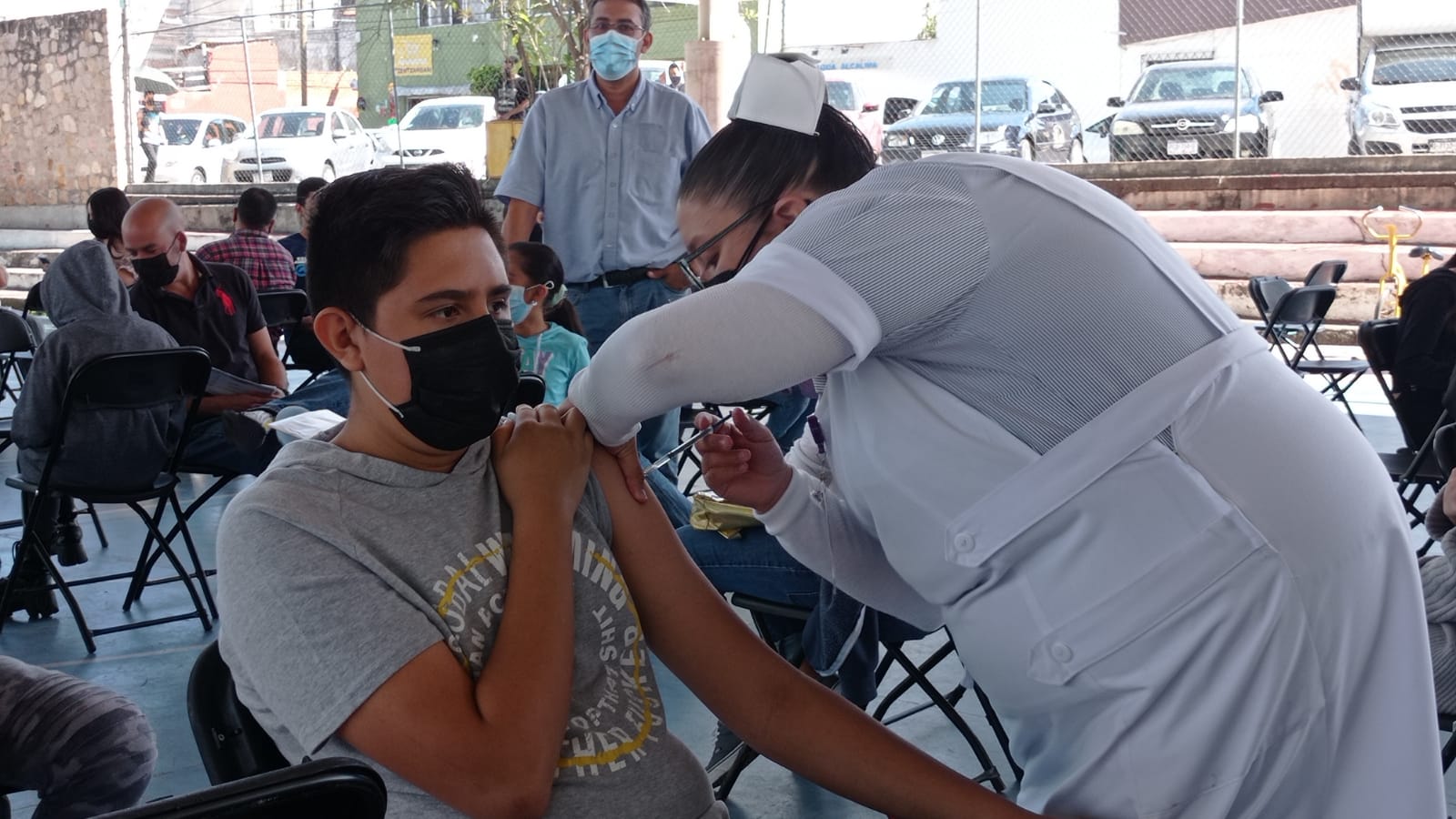 Este viernes continuó la jornada de vacunación de segundas dosis contra el Covid-19 para adolescentes de 14 a 15 años de edad en la Unidad Deportiva “Ejército de la Revolución” y la explanada del Estadio Morelos de esta capital.