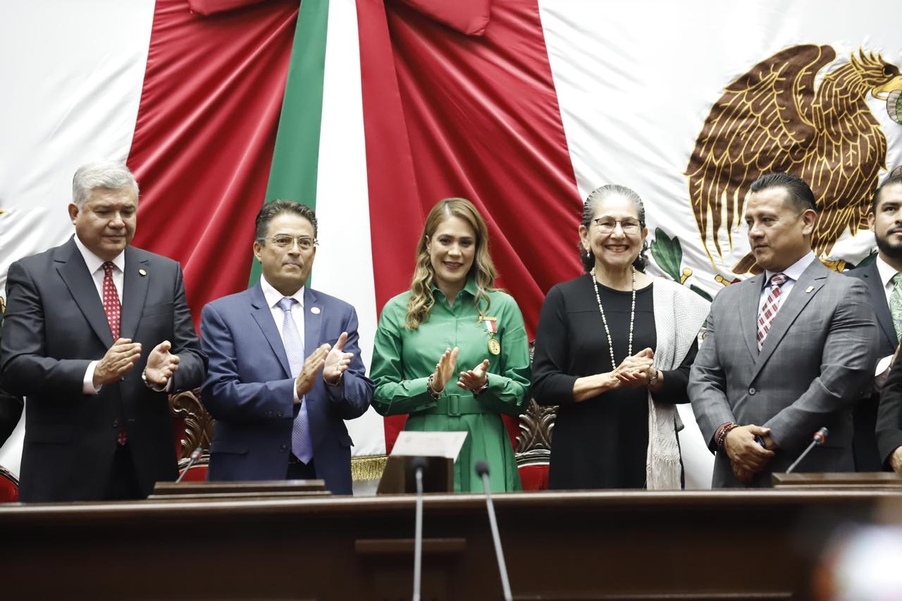 La medalla fue entregada por el secretario de Gobierno, Carlos Torres Piña, en representación del gobernador Alfredo Ramírez Bedolla y el presidente de la Mesa directiva del Congreso, Juan Antonio Magaña de la Mora, en una ceremonia donde participaron representantes de los tres poderes del estado.