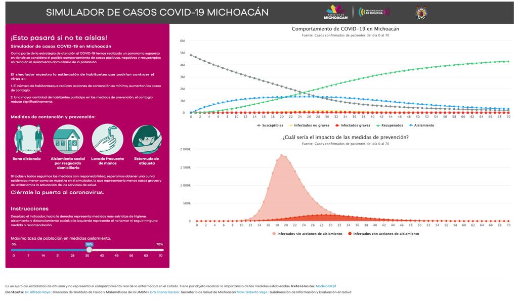 Toda la población podrá hacer uso del mismo, accediendo al simulador que ya está disponible en el micrositio http://michoacancoronavirus.com/, que fue creado por el Gobierno del Estado para mantener informada a la población sobre las medidas preventivas y acciones emprendidas en esta contingencia.