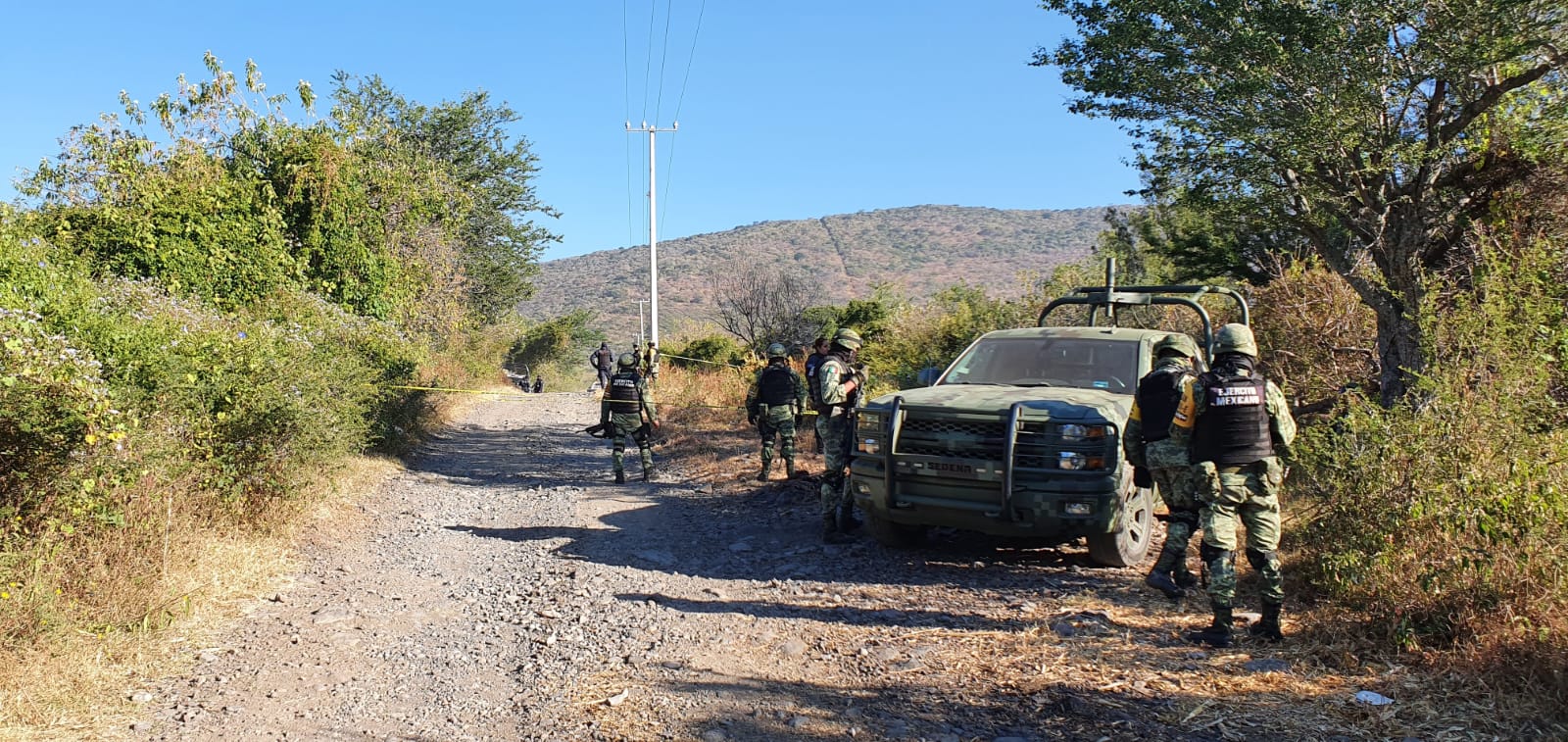 Datos obtenidos en la cobertura noticiosa permitieron establecer que este jueves los elementos castrenses se encontraban en recorridos sobre una terracería de la cabecera municipal, cuando al pasar por el predio conocido como “El Tepehuaje” fueron agredidos a tiros por los criminales.