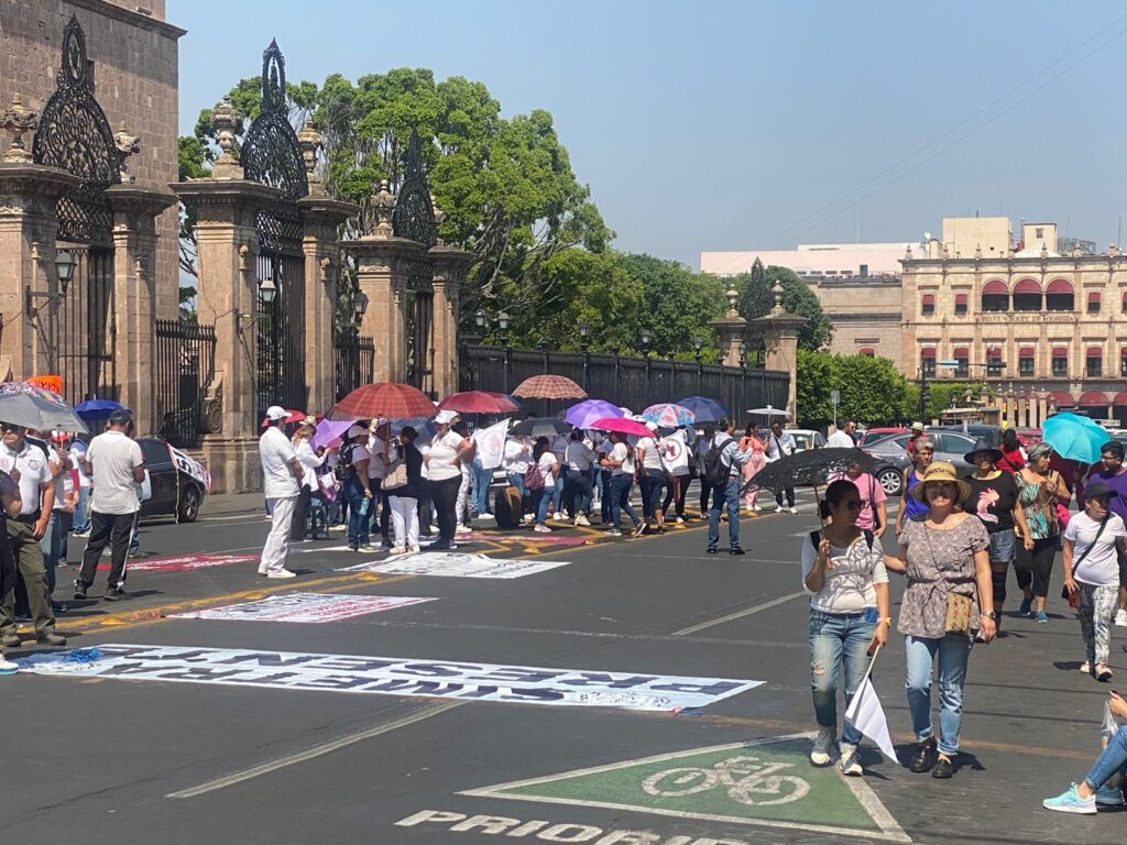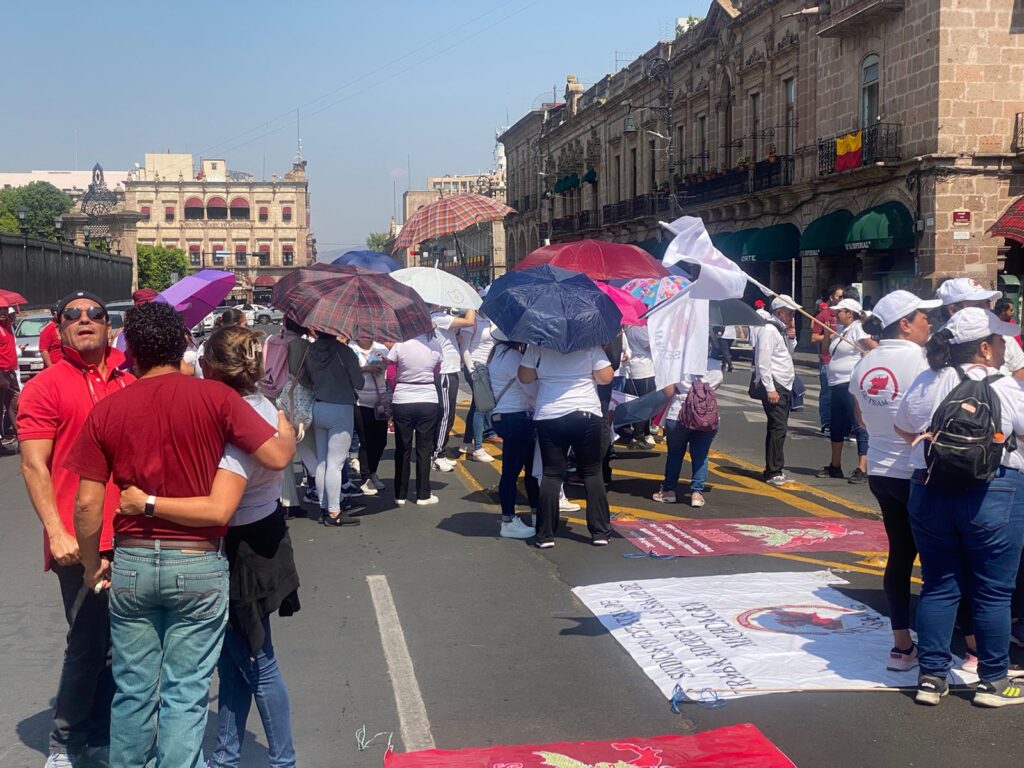 Los sindicalizados bloquearon desde temprana hora el Libramiento Sur frente a Casa de Gobierno y luego se trasladaron al centro de Morelia, donde se manifestaron frente a la sede del Poder Ejecutivo y denunciaron la negativa gubernamental a cumplir con lo que establece la norma.