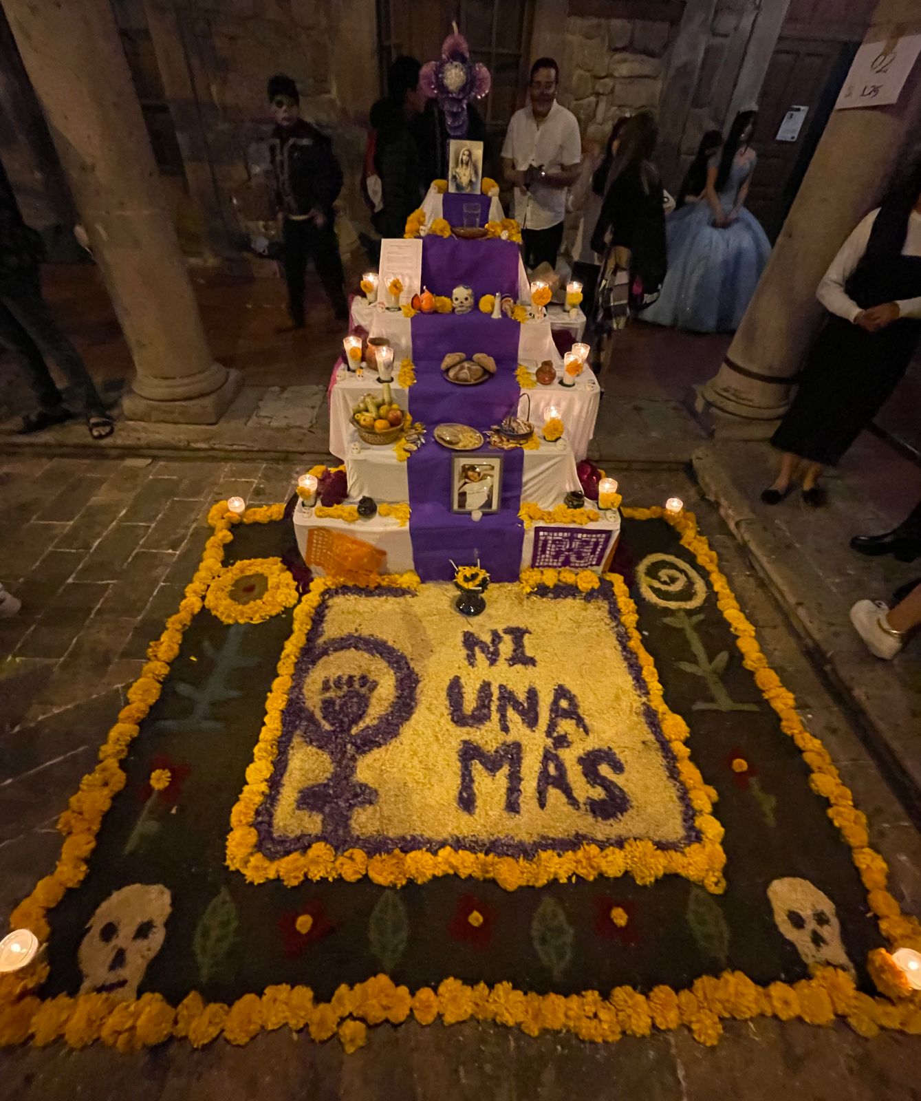 Con motivo de la noche de muertos se dieron cita más de mil estudiantes de la sección 125 del primer semestre del Colegio Primitivo y Nacional de San Nicolás de Hidalgo coordinada por la docente y licenciada en derecho Liliana Carranza Reyna, donde realizaron un altar en memoria de las mujeres que han sido víctimas fatales de la violencia.