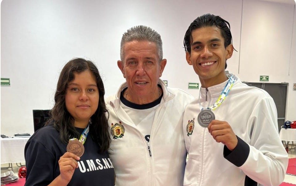Además, el taekwondo también aportó a la causa nicolaita, pues Alonso Pineda Espinosa, estudiante de la Licenciatura en Arquitectura, refrendó la Plata que ganó el año pasado en la máxima justa estudiantil, en tanto, en la misma disciplina y modalidad, pero en menos de 67 kilogramos, la alumna de la carrera de Psicología, María Guadalupe Pérez Méndez, obtuvo la medalla de Bronce.