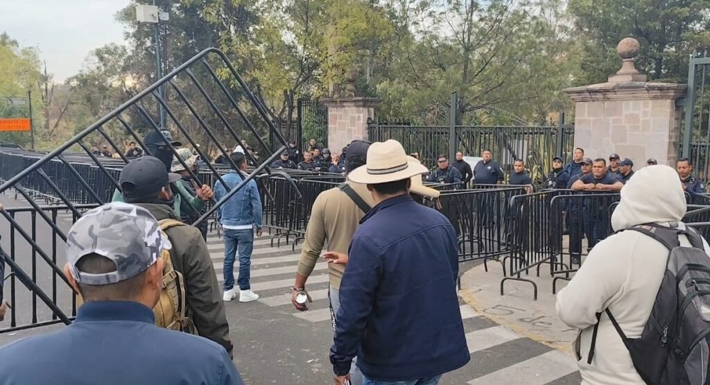 Tras algunos enfrentamientos verbales, pedradas y cohetones que se lanzaron al interior de la residencia oficial del estado, donde el gobernador Alfredo Ramírez Bedolla ofrecía su conferencia de prensa, los policías se replegaron y autoridades estatales ofrecieron una mesa de diálogo con funcionarios estatales, pero los comuneros demandaron el encuentro con el Ejecutivo.