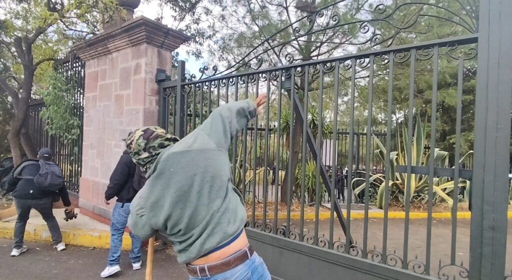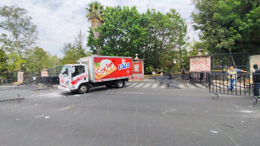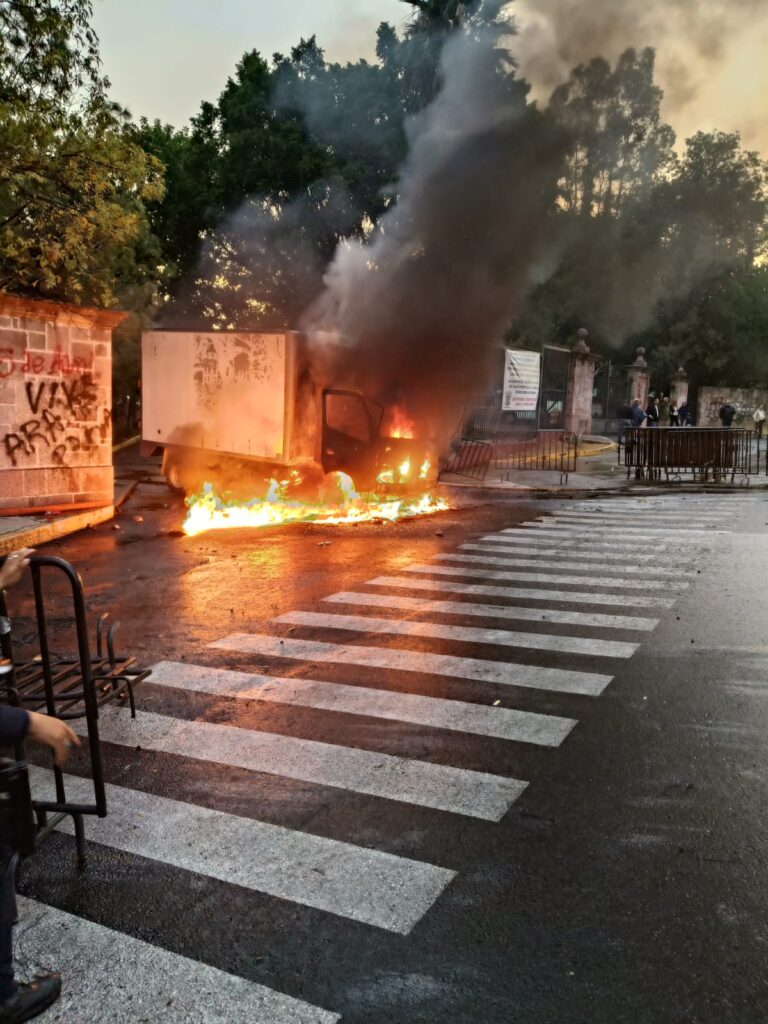 Sin embargo, a los pocos minutos regresaron con otras dos unidades comerciales, que quemaron frente a Casa de Gobierno, de donde derrumbaron la otra reja del acceso principal.