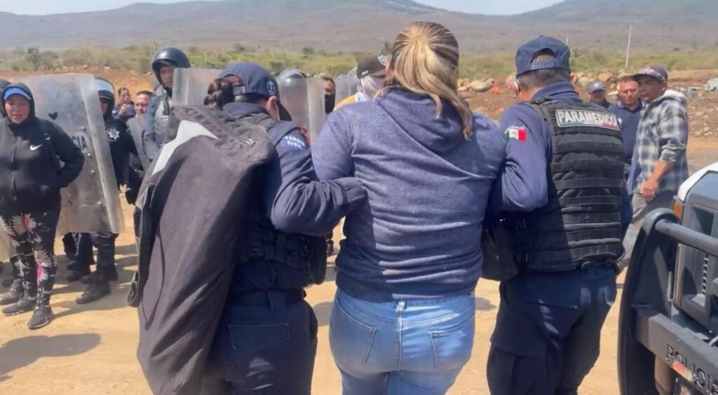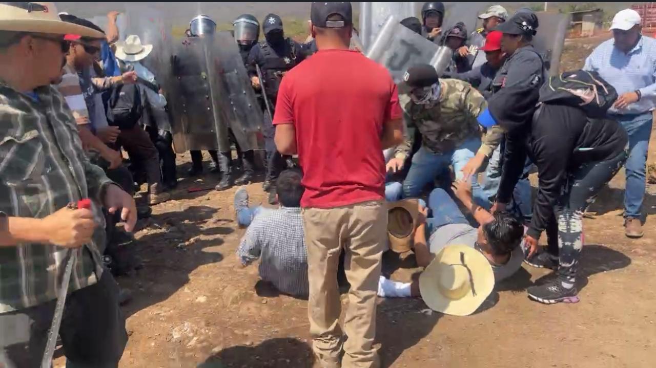 Ante la negativa del grupo, los elementos comenzaron a avanzar para retirar a los manifestantes, encabezados por el jefe de Tenencia, Santos Pérez Dimas y se dio el primer enfrentamiento, entre reclamos de los habitantes.