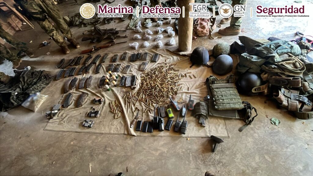 Dentro del campamento desmantelado se hallaron rifles de asalto, explosivos, equipo táctico y tecnología de comunicación encriptada. La zona, según confirmaron fuentes militares, está relacionada con rutas del narcotráfico marítimo, lo que explica la presencia estratégica del grupo criminal, pues la Armada de México ha decomisado más de 37 toneladas de clorhidrato de cocaína en lo que va del año en esta franja del Pacífico.