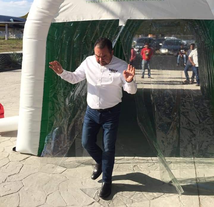 Detalló que el material que se emplea en esos túneles satinizantes, eliminan el 99.9% de los virus y bacterias, por ello se determinó su adquisición para apoyar a toda la población de la región que lo necesita, ya que en estos momentos de crisis de salud y económica, se requiere la suma y apoyo de todos.